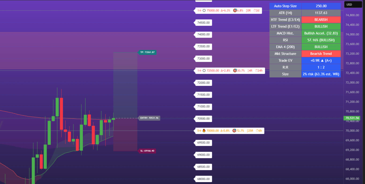 No jumping between tools. No guesswork on risk. Open your chart and the trade plan is already there.