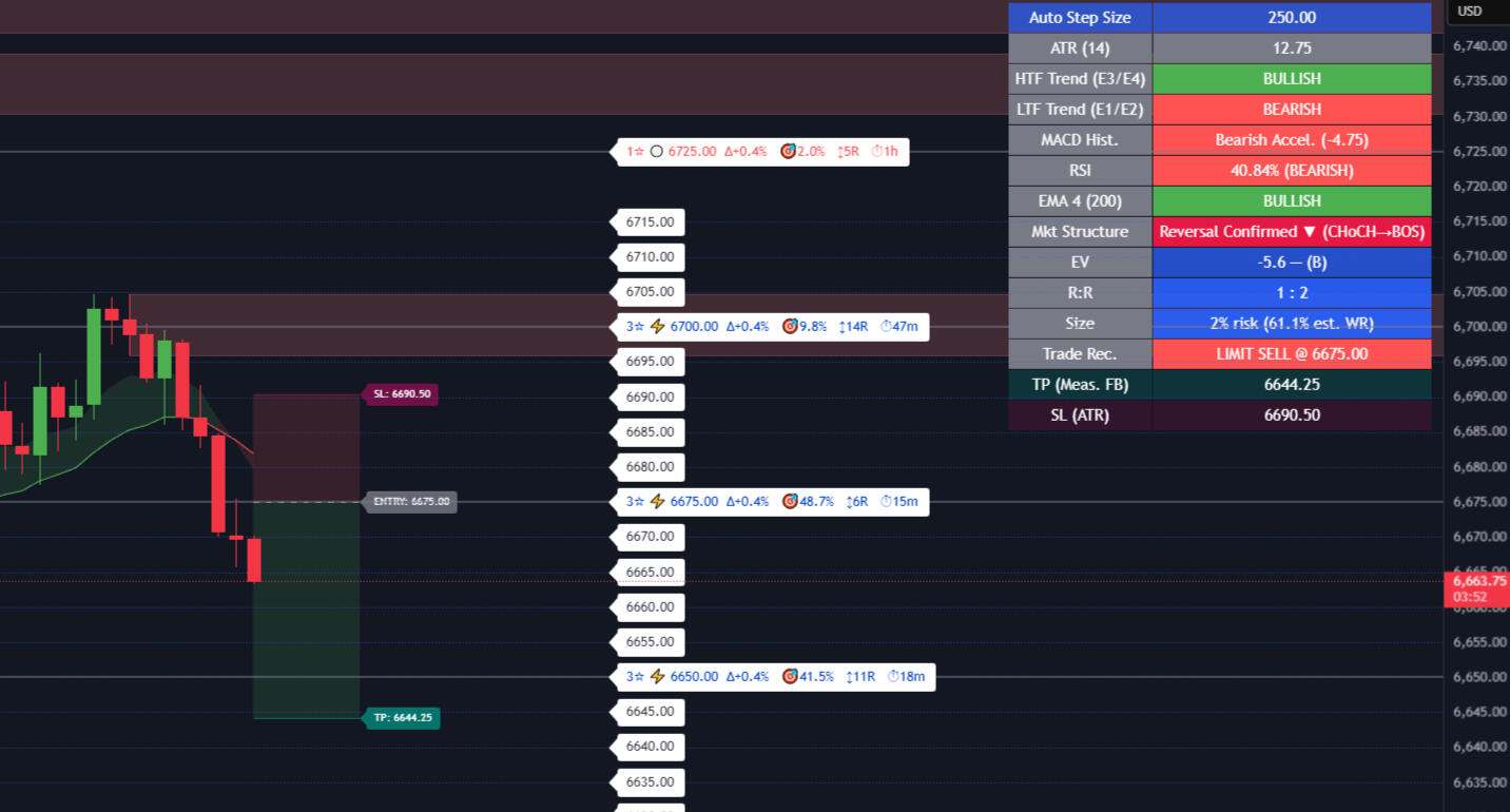 No jumping between tools. No guesswork on risk. Open your chart and the trade plan is already there.